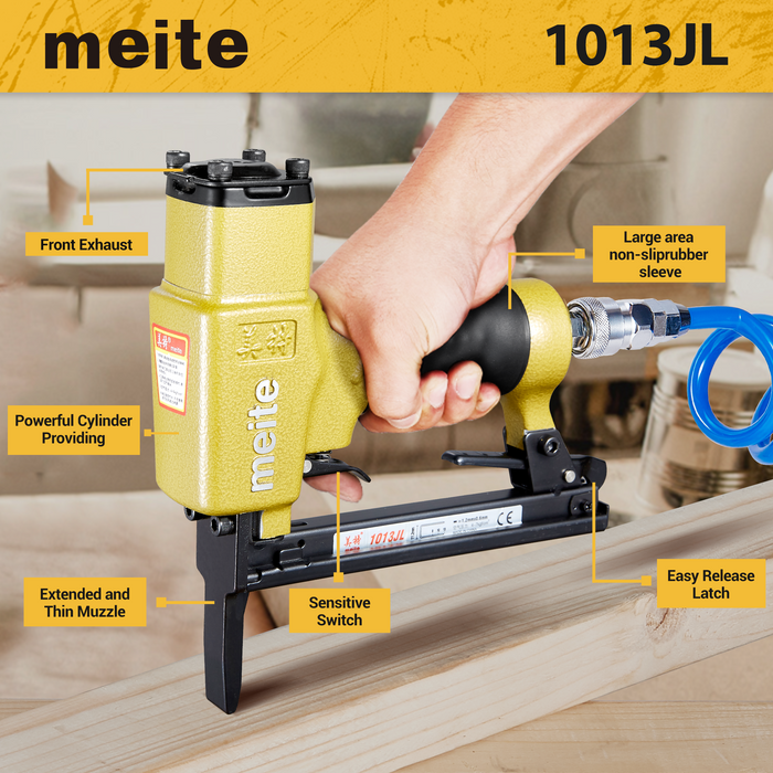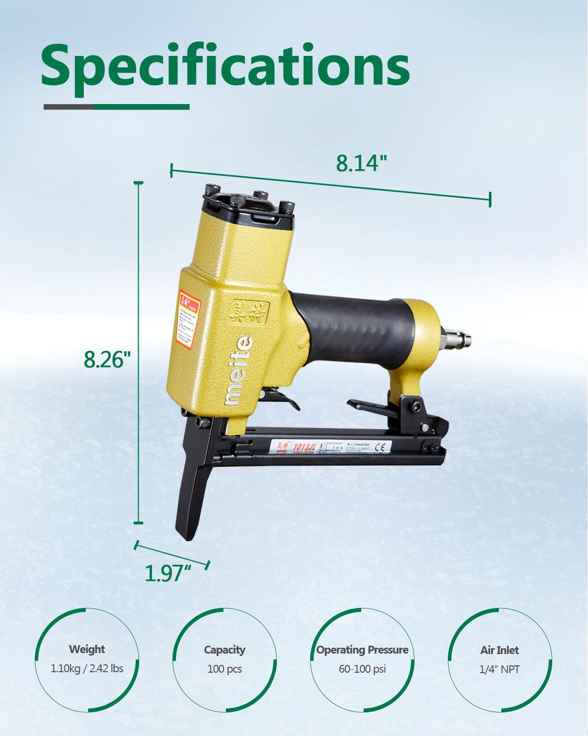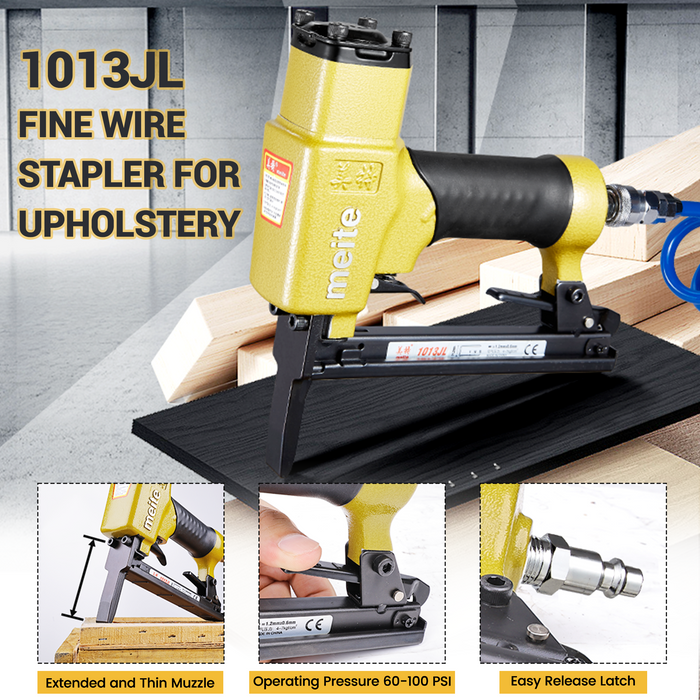 The 1013JL Pneumatic Upholstery Stapler combines a long nose design with dependable pneumatic power. Great for professionals handling furniture, car seats, and decorative projects.