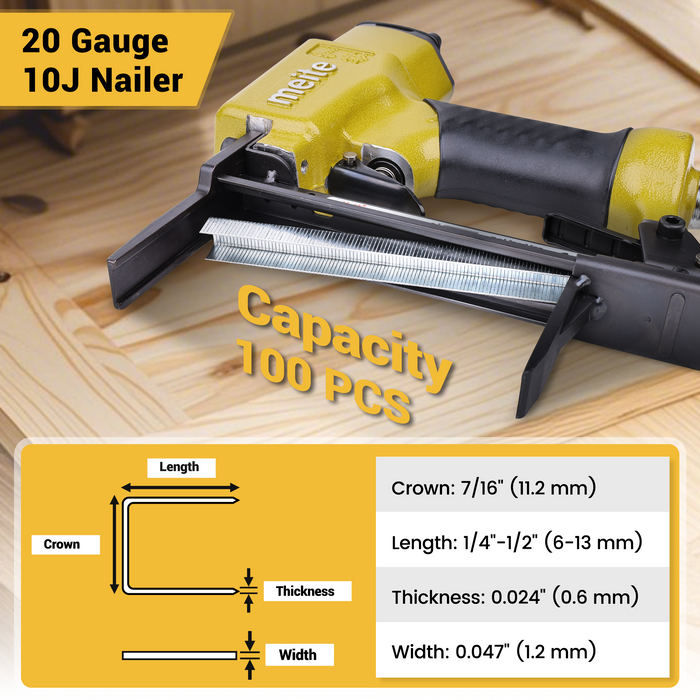 [Compatible Fasteners]: meite 20 Gauge 10J Series 7/16"(11.2 mm) Crown 1/4" to 1/2" Leg Length Staple