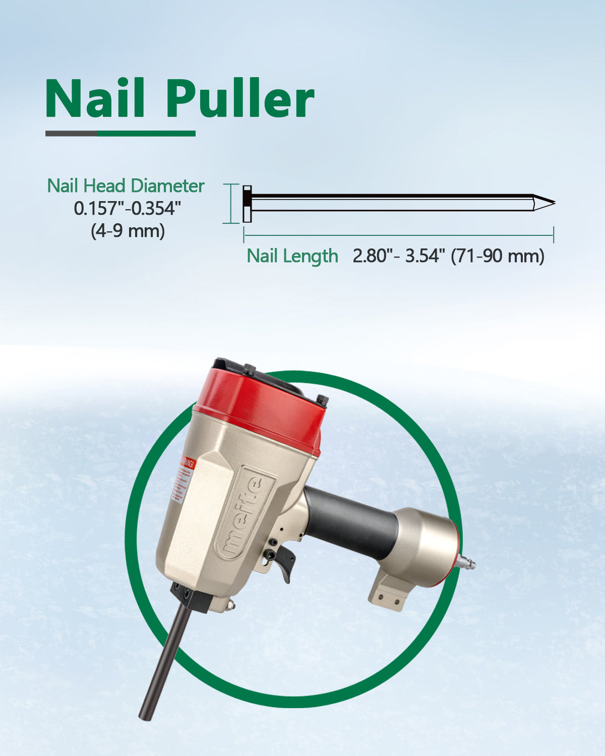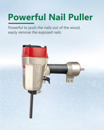 Note: This pneumatic nail removal tool pulls the nail out of the wood from the sharp pointed end.