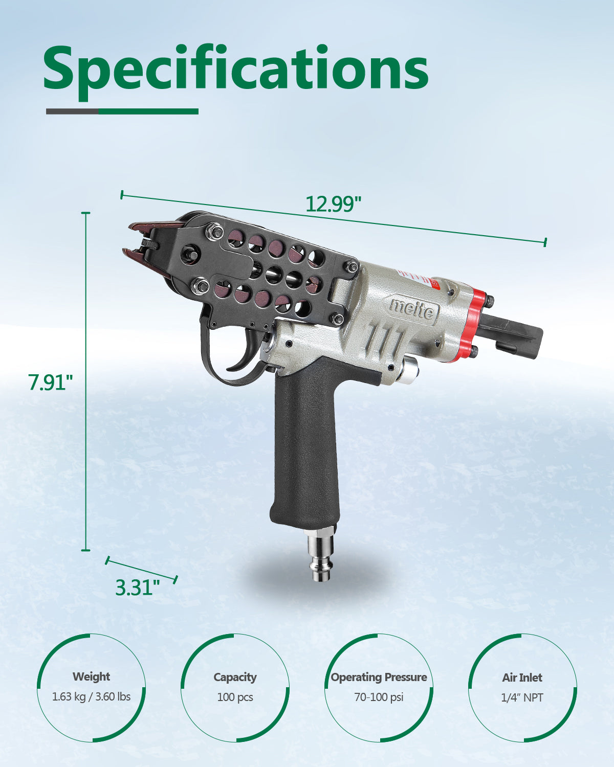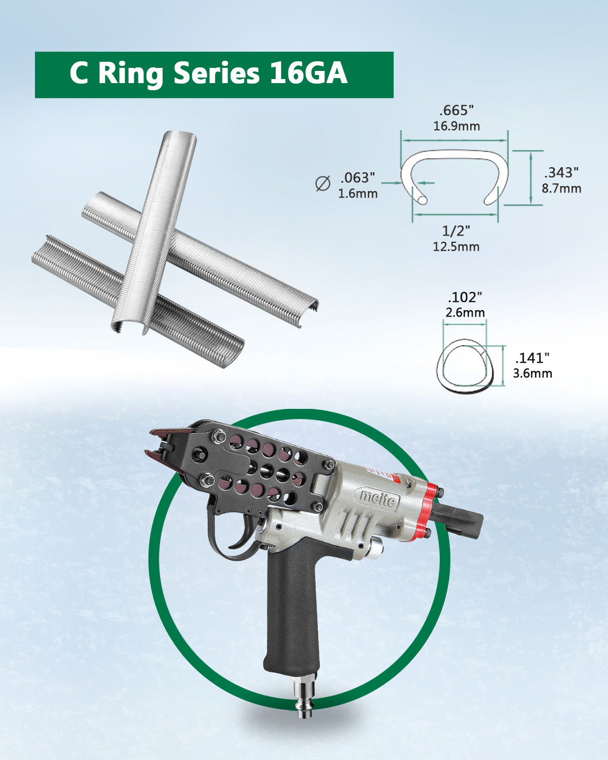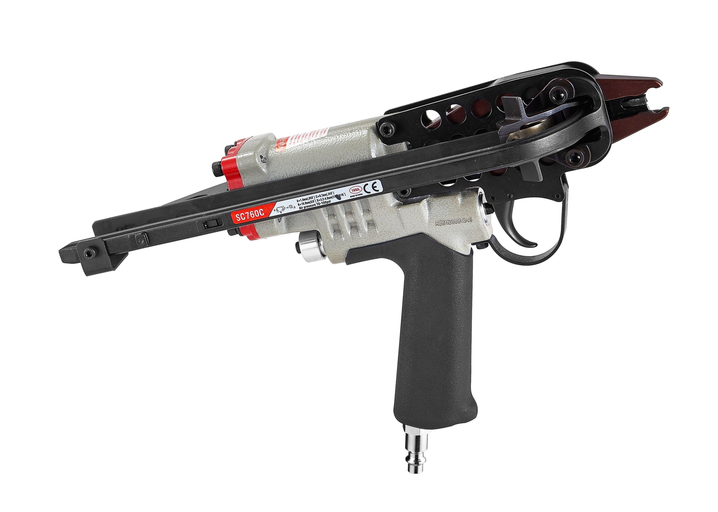 SC760C 16Ga Pneumatic Hog Ring Gun with improved trigger for better usage and stability. It is an air-powered pneumatic tool, use with an air compressor to improve your efficiency greatly.