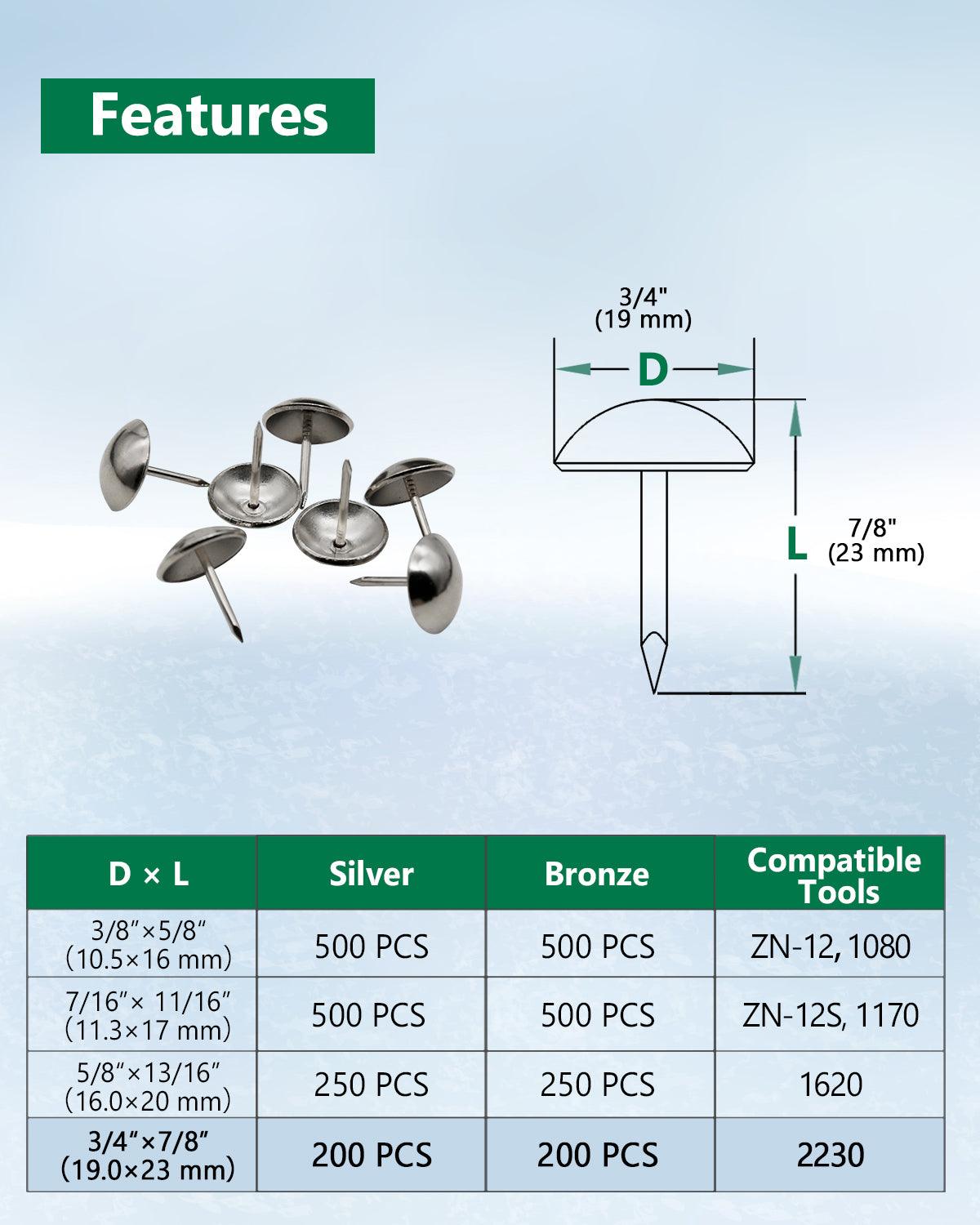 • Durable Material: Made of high-quality metal. Please clean the nail head with a dry cleaning cloth to keep it bright