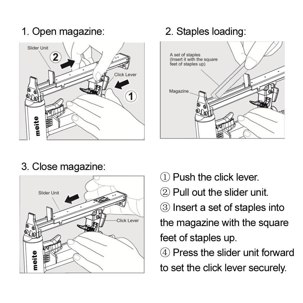 [Compatible Fasteners]: meite 22 Gauge 3/8" Crown or C Crown 9/16" to 5/8" Leg Length Staples