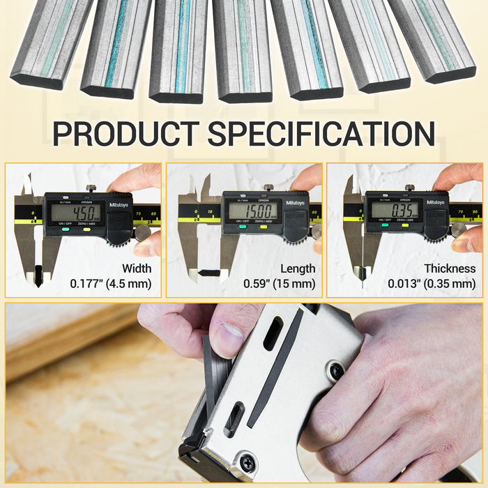 These Flexible points in 5/8" (15 mm) are compatible with picture frame staplers HM515 P515 F54 F56 F500-1 F500-2 Dual point driver. Suitable for wood frame types, these points hold glass, photos, and artwork firmly in place, reducing the risk of damage while ensuring a secure fit.